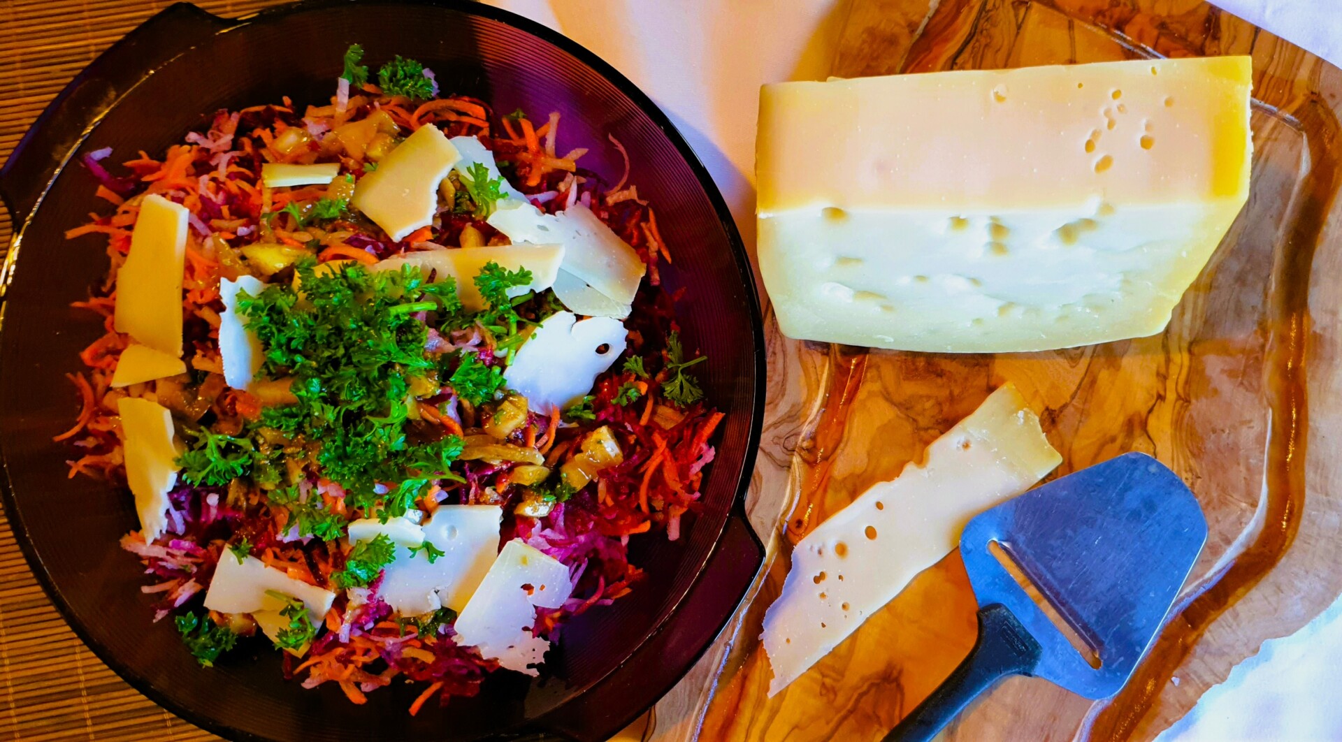 Patiekiant, salotas gardinti tarkuotu ar plonomis juostelėmis supjaustyti brandintu avių ar ožkų sūriu.