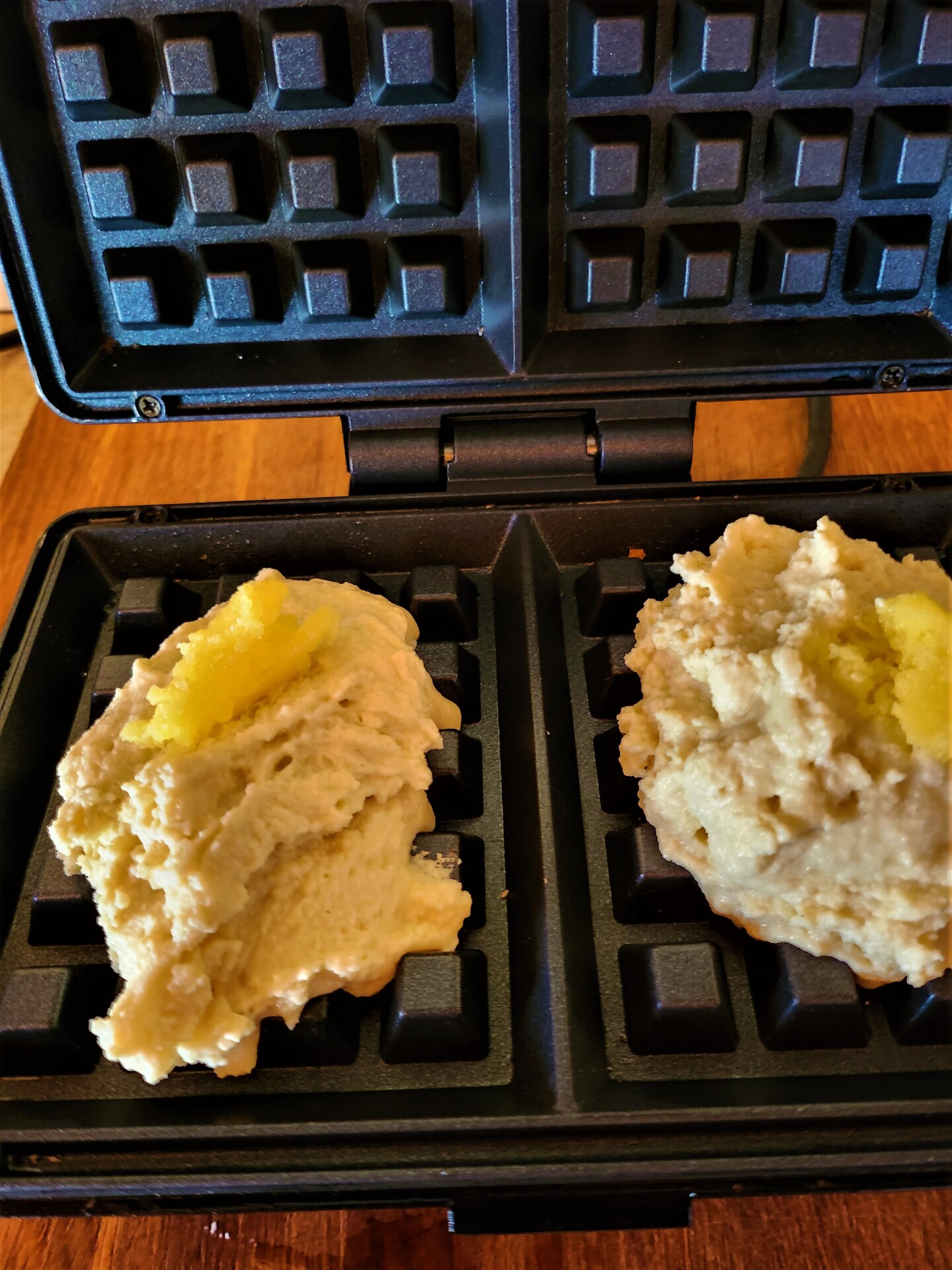 - Kepti įkaitintoje vaflinėje. Pirmiems vafliams uždėkite šiek tiek ghee sviesto, po to nebūtina.
